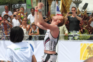 David Dellow ผู้ชนะในวันนั้นเขียนไว้ในบล๊อกของเขา “Coming into the 15km turn around point I crossed paths with Faris – a world and European ironman champion, I took the turn and 30 seconds later crossed paths with Marino vanhoenacker – the current ironman world record holder, 30 seconds later I crossed paths with Aaron Farlow – 2 time iron distance champion and then 30 seconds later I saw Marcel Zamora – 5 time ironman champion. I was feeling good at the turn and I thought I was in with a chance of the win but I knew I’d have my work cut out for me with the blokes that were around.” คงทำให้เห็นภาพความดุเดือดของการแข่งขันครั้งนี้