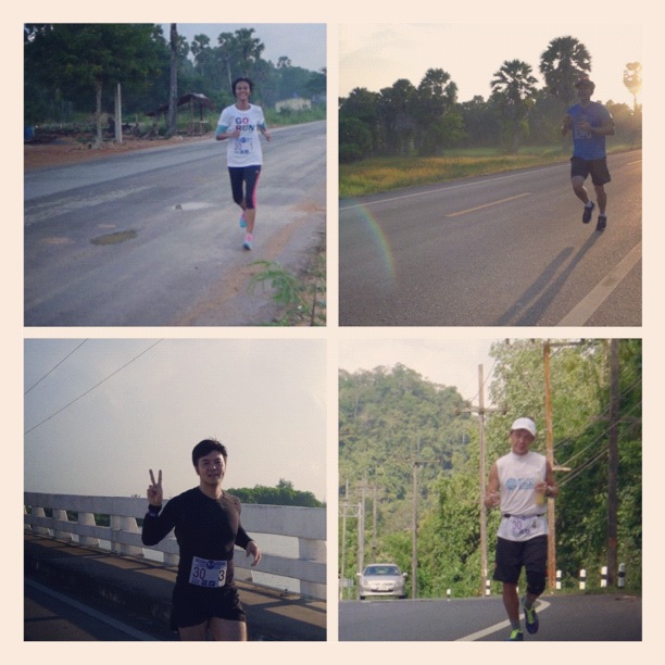 ความรู้สึกแรกของทุกคนก่อนเริ่มวิ่ง เป็นไปเหมือน ๆ กันว่า เรามาทำบ้าอะไรกันวะ นั่งอยู่บ้านดี ๆ ไม่ชอบ มาหาเรื่องกันแบบนี้ทำไม กลับหายไปอย่างรวดเร็วทันที่ที่เราก้าวเท้าแรกทำหน้าที่ผลัดของเราเพื่อทีมของเรา สิ่งที่เกิดขึ้นนี้มันน่าประทับใจเสียจริง ๆ เรามาถึงผลัดที่ห้าเพื่อรับน้ำแข็ง แต่ก็พบว่าไม่ทันอีกเช่นเคย แต่เนื่องจากเป็นโรงน้ำแข็งจริง ๆ เราจึงตัดสินใจซื้อน้ำแข็งถุงใหญ่ บรรจุเต็มกระติกน้ำทั้งสามของเรา ผมซื้อเครื่องดื่มเกลือแร่เพิ่มเล็กน้อยเมื่อรู้สึกว่ามีหลายคนเลือกใช้เครื่องดื่มเกลือแร่ ทีมของเราตัดสินใจสั่งแซนวิชจาก 7-11 เนื่องจากไม่แน่ใจว่าอาหารเที่ยงที่ผลัดที่ 8 นั้นจะหมดไม่เหลือเหมือนกับจุดแจกเสบียงอื่น ๆ ที่ผ่านมาหรือไม่ จากผลัดที่ 5 นี้รถทีมของเรามีน้ำอาหารเพียบพร้อมที่จะตะลุยกันถึงวันรุ่งขึ้นเลยทีเดียว ผมลงวิ่งในผลัดที่ 7 ที่เวลาประมาณ 10โมงกว่า ๆ ระยะทาง 7.34Km ด้วยเวลาเพียง 34 นาที ความเร็ว 4:47นาที ที่ผมเองไม่เคยทำได้มาก่อนในชีวิต ความรู้สึกที่จะต้องทุ่มเทอย่างเต็มที่อย่างที่ทุก ๆ คนได้ทำให้เห็น ความรู้สึกรับผิดชอบในฐานะ CRO ในฐานะที่เป็นคนที่มีชั่วโมงซ้อมสูงที่สุดคนหนึ่ง และตุ๊ทำไว้เร็วมาก ๆ ผมจึงวิ่งอย่างไม่คิดชีวิต ช่วงกิโลเมตรสุดท้ายอากาศเริ่มร้อนขึ้นอย่างชัดเจน ผลัดที่ 8 อย่างแก้วรับไม้แรกไปอย่างโหด ๆ เพราะท้ายที่สุดแล้วเราพบว่าอุปสรรคที่สำคัญที่สุดของงานนี้คือความร้อนนั่นเอง และเปิดงานนี้ด้วยแก้วไม้ที่แปดของเรา