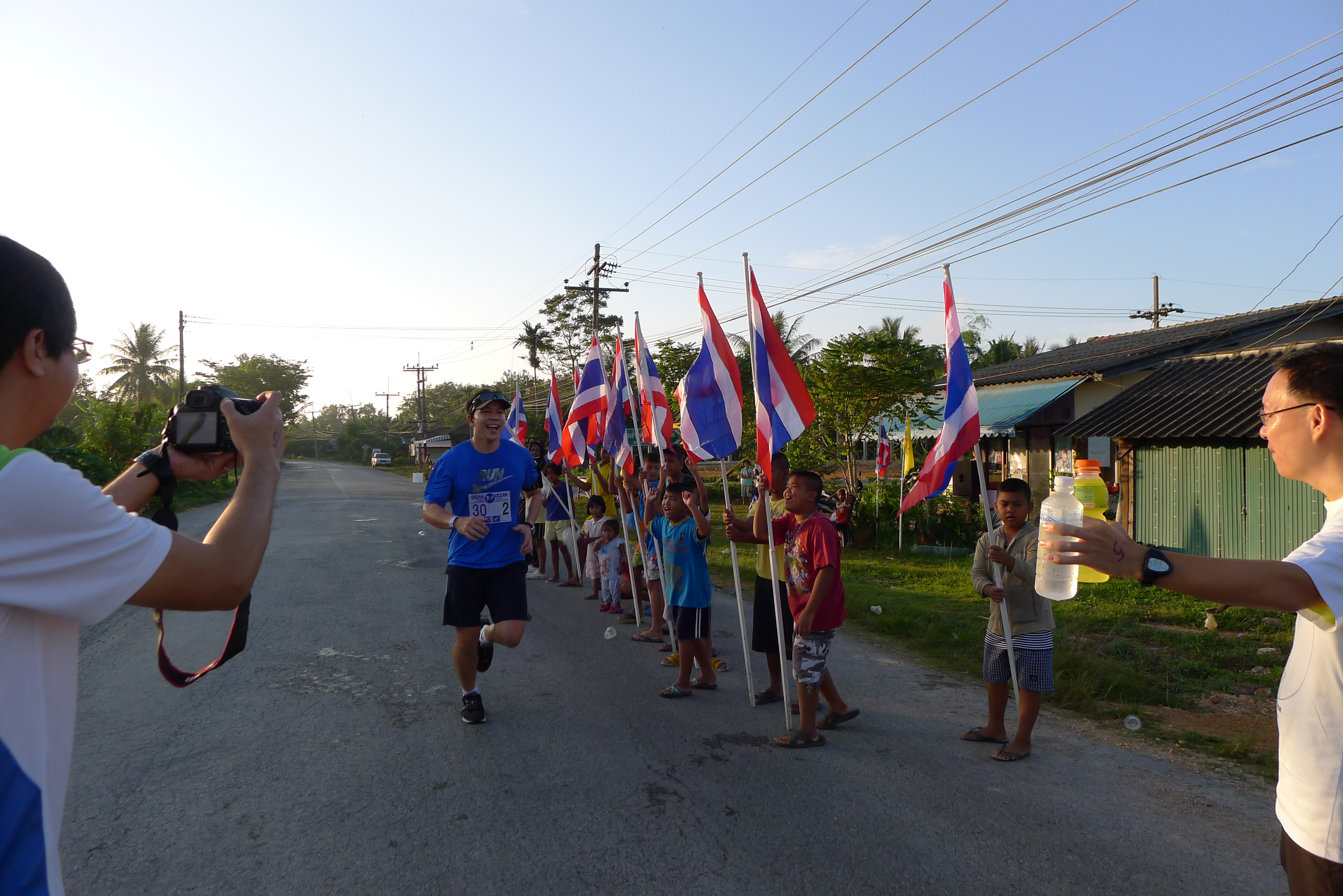 ไม้สุดท้ายของทุก ๆ คนดูเหมือนจะดีกว่าที่เราฝันไว้มากนัก เมื่อมีแววของเมฆฝน แต่ดูไม่เหมือนฝนจะตก ถึงขนาดว่าหมอนกจบผลัดสุดท้ายของหมอด้วยคำปิดท้ายที่ว่า “วิ่งสบายมากเลย ไม่ร้อน ลมเย็น” เราจึงดูท่ามีความสุขกันเป็นอย่างมาก มีแต่ตุ๊เท่านั้นที่ดูกังวลว่าฝนอาจจะตกได้ ไม้ที่สองและสามผ่านไปอย่างราบรื่น จนกระทั่งมีโทรศัพย์จากกองเชียร์ของเราที่ประกอบไปด้วยเชอร์รี่ ภรรยาของผม แอม ภรรยาของโด่ง และลูก ๆ ของเราอีกสามตัวน้อย ๆ กำลังประสบปัญหาเครื่องยนต์มีปัญหาระหว่างขับตามมาพบเราที่เส้นชัย เมื่อเขาพบว่ามีควันออกมาจากช่องแอร์ และมียางแบนเกิดขึ้น สาว ๆ ไม่สามารถเปลี่ยนยางได้ และเรากำลังจะต้องขับรถไปส่งนักวิ่งอีกหลายผลัด เราคิดกันหลายตลบว่าจะทำอย่างไรกันดี ความพยายามทั้งวันจะต้องสิ้นสุดตอนนี้แล้วหรือ แต่โชคดีที่เราพบกับตำรวจที่มาช่วยอำนวยความสะดวกในการแข่งขัน จึงเข้าไปขอความช่วยเหลือ และตำรวจก็ได้ส่งทีมเข้าไปตรวจช่วยเหลือพร้อมกับออกรถเพื่อไปสังเกตุการอีกแรง เมื่อเราสบายใจขึ้นเราจึงรีบบึ่งรถตามอำนวยไม้ที่กำลังออกวิ่งอยู่ในขณะนี้ แต่แล้วก็มีเหตุการณ์ที่น่าจดจำเล็กน้อยเมื่อเราแอบเห็นคู่แข่งอีกทีมของเราวิ่งไปผิดทาง นักวิ่งชาวมาเลย์หันมาบอกเราว่า รถทีมของเขาเลยไปไกลแล้ว เราจึงอาสาขับรถไปตามให้ขณะที่นักวิ่งย้อนกลับไปวิ่งบนเส้นทางที่ถูกต้อง อำนวยแอบดีใจเล็กน้อยที่มีโอกาสได้แซงทีมนี้ที่หนีเรามาเป็นระยะเวลานานมากแล้ว เราขับรถตามหารถทีมของคู่แข่งจนเลยมาถึงถนนใหญ่ จึงเข้าใจได้ทันทีว่าเป็นไปไม่ได้เสียแล้วรถทีมเขาไม่ได้มาทางนี้เป็นแน่ เมื่อย้อนกลับไปเพื่อจะเปลี่ยนผลัดกับอำนวย ก็พบอำนวยยืนรอ ณ จุดเปลี่ยนผลัดนานกว่าห้านาทีแล้ว เรารีบเปลี่ยนผลัดทันที มารู้ทีหลังว่ารถทีมของชาวมาเลย์มารออยู่ก่อนแล้ว และทีมนั้นก็ทิ้งห่างเราออกไปอย่างน้อยอีกห้านาทีเช่นเคย ช่วงทางวิ่งนี้เป็นช่วงวิ่งที่มีความสวยงามมากที่สุดช่วงหนึ่ง ในป่ายางที่ไม่รกทึบมากเกินไปนัก ต้นยางสองข้างถนนโอนเอนเข้าหากันเกิดเป็นโพรงกว้าง ๆ ให้ร่มเงาร่มรื่น พร้อมกับทิวทัศน์อันแปลกตา ฝนเริ่มโปรยลงมาเมื่อถึงผลัดของโด่ง และหนักขึ้นมากในผลัดของผมเอง ในเวลานี้ ทีมกองเชียร์ขับรถผ่านมาแซงผมพร้อมโบกมือให้ ผมเห็นรถตำรวจขับนำราวกับว่าเป็นวีไอพี ก็อดยิ้มไม่ได้ แม้ว่าจะกังวลว่าจริง ๆ แล้วรถของผมมีปัญหาอะไร ผมเปลี่ยนไม้สุดท้ายให้กับแก้ว แล้วเราก็บึ่งรถมารอที่ตำแหน่ง 1 กิโลเมตรสุดท้าย ฝนยังคงโปรยปรายอยู่เล็
