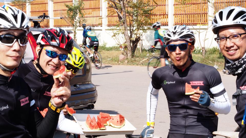ใช่ว่าจะเป็นเรื่องเลวร้าย การรวมกลุ่มกับทีมแปดคน ปั่นเป็นระยะทาง 180+ ผ่านเพื่อนนักจักรยานหลักพันคน แม้ว่าจะไม่ได้สัมผัสความรู้สึกของทริปประเพณี ชีวิต 6-8 ชม. บนถนนร่วมกัน จะสร้างความประทับใจ ความผูกพันธ์ุได้อย่างไม่น่าเชื่อ ว่ากันว่าใครได้ปั่นดูดใครเป็นระยะทางเกิน 100+ คนเหล่านั้นจะกลายเป็นเพื่อนกันจวบชั่วกัลปวสาน งานนี้คงไม่ครบร้อย แต่ก็ยาวนานเพียงพอที่จะเป็นเพื่อนกันไปได้ทั้งชีวิตเลยทีเดียว จากจุดเริ่มต้นที่พระจอมเกล้าพระนครเหนือ ไปถึงวัดเกตุม ระยะทางร่วม 70 กม. ผ่านถนนหนทางอันโหดร้าย ผมไม่คิดว่าจะสร้างความประทับใจให้กับใครได้มาก โดยเฉพาะกลุ่มมือใหม่ที่หลุดจากกลุ่มนำอย่างทีมผม นักปั่นล้าหลังสามคนมีรวมตัวกับทีมที่เหลือที่เข้ามาถึงก่อน (ได้ยังไงไม่รู้) ที่จุดพัก เข้าห้องน้ำ โพส IG FB กินน้ำ กินแตงโม แล้วก็ตัดสินใจปล่อยหัวแถวล่วงหน้าไปเหมือนเคย แล้วเราคุยกันว่าเดี๋ยวเราจะเกาะกันไป 8 คัน แล้วเราก็เริ่มปั่นออกพร้อม ๆ กันอีกครั้ง