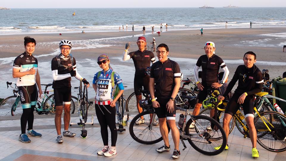 เบรคสุดท้ายเข้าเร็วกว่าที่คิด เวลาแห่งความสนุกมักจะผ่านไปอย่างรวดเร็ว เรามาพักเบรคที่ร้านกาแฟน่ารัก ๆ อีกร้านหนึ่ง เราใช้เวลาส่วนมากในการหลอกล่อให้น้องแววดาวยกจักรยานลงมาปั่นเข้าหัวหินเป็นระยะทางสั้น ๆ ด้วยกัน แต่ไม่สำเร็จ โด่งยกจักรยานลงมาแล้วเปรย ๆ ว่าเหตุการณ์วันนี้ห้อมเพร่งพรายให้เมียรู้เป็นอันขาด ทุก ๆคน ตบปากรับคำ เส้นทางสุดท้ายเราปั่นกันไปอย่างช้า ๆ ปั่นไปคุยไป 180+km ไม่ได้ยาวนานจนเกินเหตุ แม้ว่าผมจะไม่ได้ทดลองปั่นต่อเนื่องเพื่อเป็นการเตรียมสำหรับรายการไอรอนแมน แต่วันนี้ก็เป็นกิจกรรมที่ให้บรรยากาศและความสนุกสนานไปอีกแบบ เราปั่นเลี้ยวซ้ายเข้าสู่เส้นชัยที่ริมทะเล วิวสวยจนได้ภาพสวยเพียงพอที่จะเป็น cover photo ของ FB ของทีม ถ่ายรูปนั่งลุ้นรางวัลกัน ไม่มีใครสนใจที่จะตอบคำถามดร.ตุ๊ “ปั่นถึงแล้วยังไงวะ” แต่ในใบหน้าของแต่ละคนผมรู้ว่าทุกคนมีคำตอบของตัวเองอยู่ในใจ เย็นวันนั้น 5 คนในทีมนั่งรถกลับกรุงเทพในทันที ส่วนผม โด่ง ตุ๊ ยังใช้เวลาอยู่ในหัวหินอีกหนึ่งคืน เราสังสรรค์กันเล็กน้อย ตามประสาเพื่อนเก่า ก่อนที่จะแยกย้ายกันกลับไปในวันรุ่งขึ้น ผมยังต้องขับรถอีกสามวันสองคืนก่อนที่จะถึงปัตตานี มานั่งอมยิ้มดูรูปต่าง ๆ ที่ค่อย ๆ ถูก tag เพิ่มลงมาใน FB ของกลุ่มทีละรูป ละรูป หลาย ๆ คนในทีมที่ได้สัมผัสความรู้สึกนี้คงเข้าใจว่าผมนั่งยิ้มทำไม แม้กระทั่งโด่งที่สัมผัสเสี้ยวหนึ่งของประสบการณ์ แม้ว่าทุกวันนี้ทีมเราจะใช้คำว่า “โด่ง” เพื่อแทนคำว่า DNF อย่างเป็นทางการตั้งแต่วันนั้น แต่ด้วยชั่วโมงบินอย่างโด่ง เคาะให้ได้ 100+ อย่างวันนั้น ไม่ใช่เรื่องง่ายเลย ผมเองใช้เวลาซ้อมและแข่งหนึ่งปีที่จะเพิ่มระยะซ้อมและแข่งในช่วง 70 ไปเป็น 100+km จริง ๆ แล้วโด่งทำให้ผมแปลกใจด้วยซ้ำที่ตัดสินใจเข้าปั่น 180+ ด้วยประสบการ์แบบนั้น