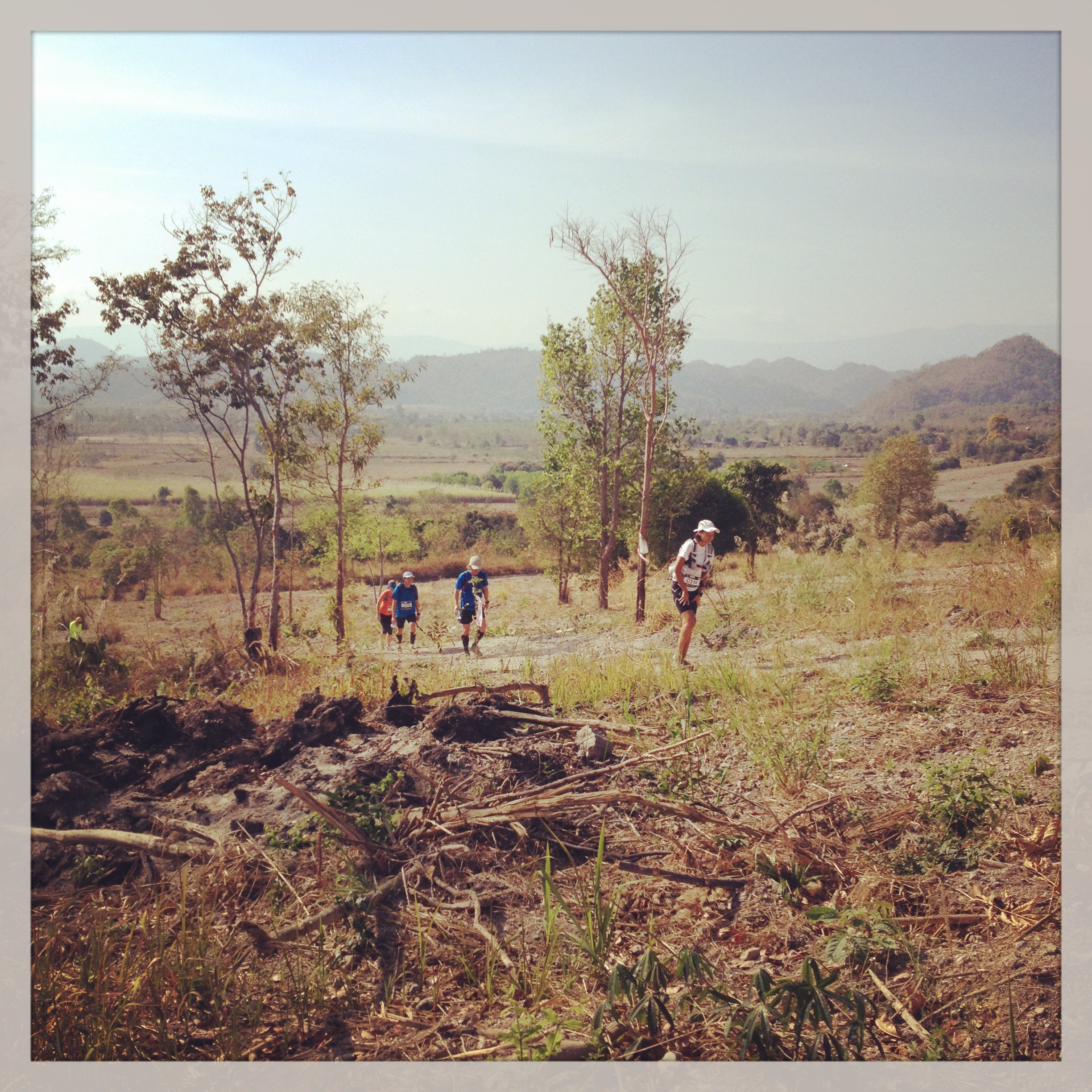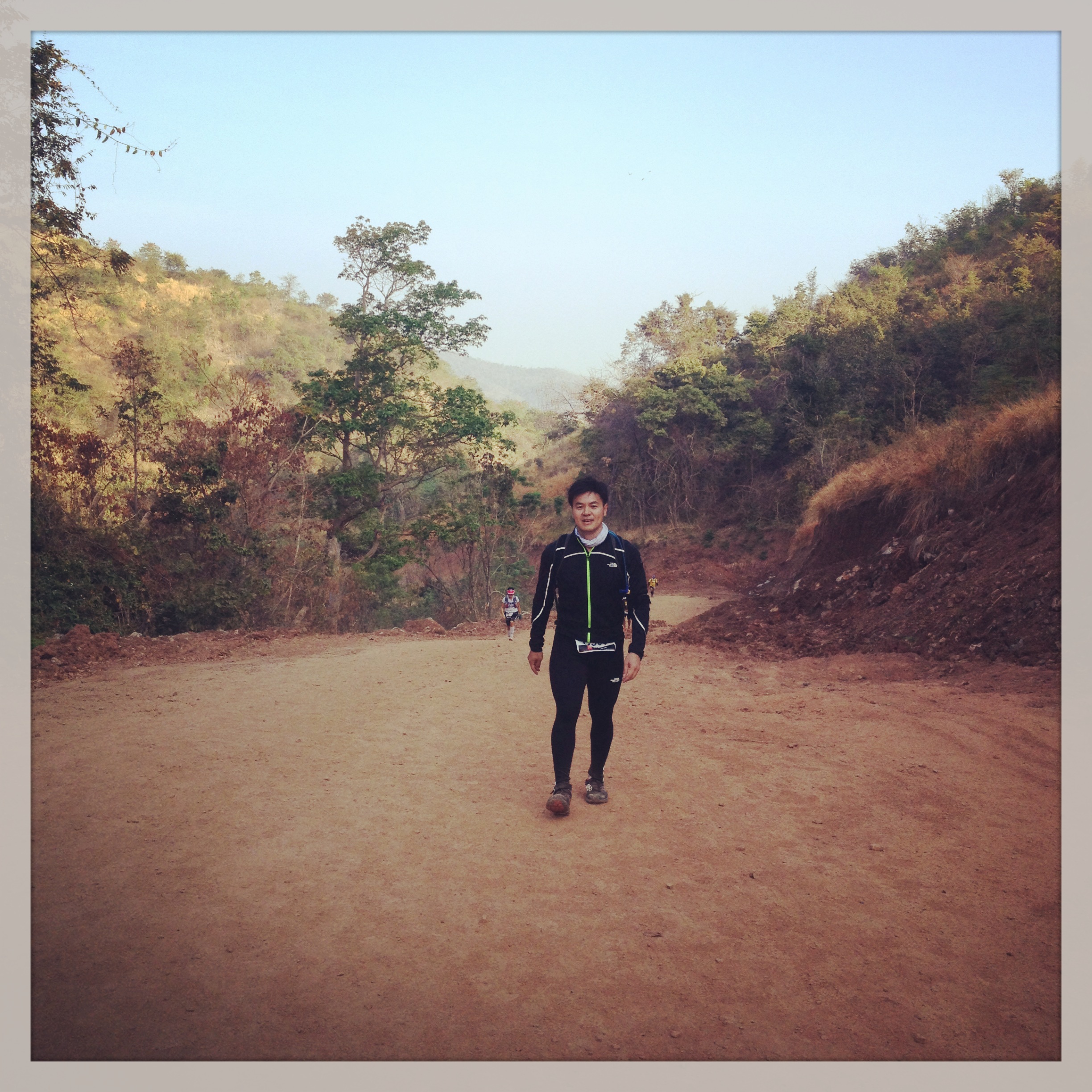 เราค่อย ๆ คืบคลานไปบนเส้นทางที่เขจัดไว้ให้ ช่วงประมาณ กม. ที่ 25 ก็เริ่มเป็นช่วงเขาอีกรอบ และเป็นเส้นทางที่ทรมานจิตใจเสียเหลือเกิน เราเดินกันมาแล้วร่วมสี่ชั่วโมง เส้นทางถูกจัดให้เป็นทางขึ้นไปบนเขาแล้วกลับออกมา ณ ตำแหน่งเดิม หลายคนออกมาแล้วบอกกับเราว่าบนเขานั้นไม่มีจุดเชคพอยท์อีกแล้ว เราจะยังสามารถรับรางวัลในวันนี้ได้โดยไม่จำเป็นต้องเดินเข้าไปขึ้นเขา ตุ๊เริ่มเปรย ๆ ว่าเราไม่ต้องเข้าไปก็ได้มั้ง ผมพยายามทำเป็นไม่ได้ยิน แล้วรีบ ๆ เดินหน้าเข้าไป ผมรู้ดีว่าในเวลาที่เราอ่อนล้า เจ็บปวดและเหน็ดเหนื่อยอย่างนี้ การคิดสั้นเป็นสิ่งที่เกิดขึ้นได้ เส้นทางภายในหุบเขาที่สองนั้นประมาณ 7 กม. ซึ่งต้องใช้เวลาเดินประมาณชั่วโมงเศษ แต่เขานั้นมันช่วงเลวร้าย ทั้งในแง่ความความชัน ความร้อน และในแง่ของความรู้สึกเสียรู้ที่ในท้ายที่สุดแล้วเาก็จะต้องกลับไปที่จุดเดิมเมื่อกี้อีกครั้ง หลังจากอีกหนึ่งชั่วโมงของความทรมานนี้ผ่านไป ใช่แล้ว ถึงตอนนี้ผมเริ่มเข้าใจแล้วว่าความรู้สึกที่เกิดขึ้นในตอนนี้มันคืออะไร “ทรมาน” คำนี้ผุดขึ้นในใจผม ผมสบถขึ้นมาดัง ๆ วันนี้มันช่างทรมานจริง ๆ ณ เวลานี้ ผมเริ่มวิ่งกระหย่องกระแหย่งเป็นพัก ๆ ทีมสามคนของเราแตกเป็นช่วง ๆ โดยมากผมจะเป็นฝ่ายนำขึ้นไป แล้วสองคนหลังค่อย ๆ ตามมาจนทัน โด่งเริ่มมีอาการเข่าที่น่าเป็นห่วงมากขึ้นมาก ดุเหมือนว่าการเดินลงเขาแทบจะทำไม่ได้เลย ต้องเดินกรรเชียงปูลงมาบ้าง เดินถอยหลังบ้าง ผมก็อาศัยช่วงเวลาที่หยุดรอโด่งมายืดกล้ามเนื้อหลังไม่ให้เกิดการ collapse ขึ้น เพื่อ ณ ตอนนี้ ผมเริ่มมีอาการเข่าอ่อน หลังพับ เป็นพัก ๆ นั่นเป็นอาการของหลังที่พยายาม shut down ตัวเอง แต่ผมยังหลอกให้มันทำงานต่อไป