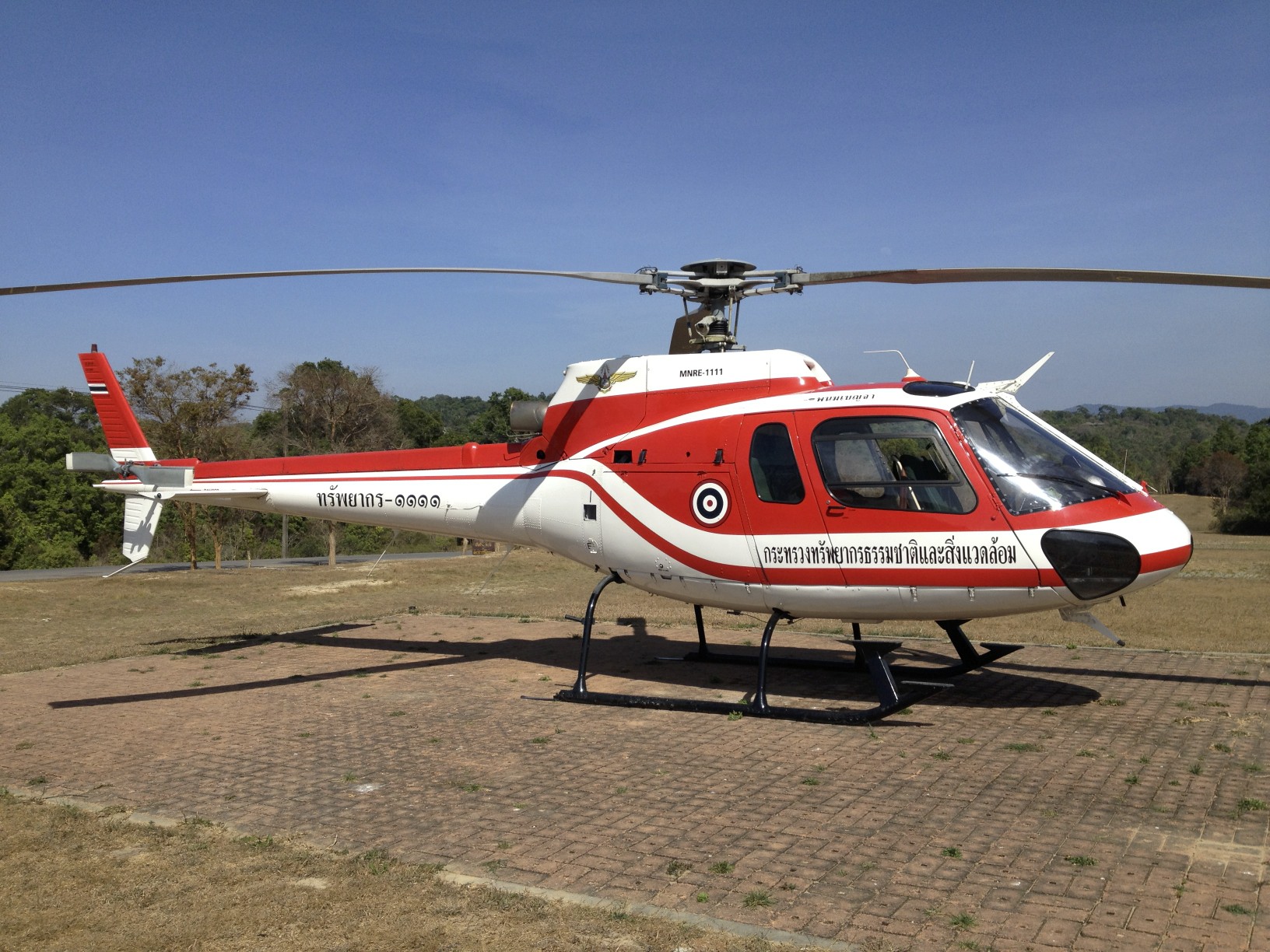 เมื่อถึงใกล้บริเวณยอดเขาผ่านอ่างเก็บน้ำเล็ก ๆ ผมคิดในใจว่าพรุ่งนี้น่าจะต้องพาครอบครัวเข้ามาเยี่ยมชมบรรยากาศเขาใหญ่ยามเช้าสักเที่ยว เข้ามาจุดชมวิว แวะขึ้นมาถ่ายรูปที่อ่างเก็บน้ำเล็กน้อยก่อนที่เราจะลากลับกรุงเทพฯในช่วงสาย ๆ และเพื่อเป็นการเพิ่มความตื่นเต้น ผมจึงถือโอกาสแวะไปถ่ายรูปคอปเตอร์ที่จอดในบริเวณนั้น เพื่อเป็นตัวล่อให้ลูก ๆ ตื่นเต้นกับการตื่นเช้าขึ้นมาในเขาใหญ่ แม้ว่าทหารที่เฝ้าอยู่จะบอกว่าคอปเตอร์จะออกเดินทางกลับในเย็นนี้ เป้าหมายในการที่จะเก็บรูปไปหลอกล่อลูก ๆ นั้นได้สำเร็จลงแล้ว เมื่อปั่นถึงยอดผมกับอำนวยจอดรอตุ๊อยู่พักหนึ่ง แต่เราได้คุยกันแต่แรกแล้วว่าไม่ต้องรอกัน ตอนนี้เราสายมากแล้ว จากที่วางแผนว่าจะปั่นเสร็จประมาณเที่ยงวันนี้ ตอนนี้เวลาประมาณบ่ายสองโมงเข้าไปแล้ว ตุ๊อาจจะต้องแยกกับเราที่หน้าด่านเพื่อไปเชคเอาท์โรงแรมของเขา ไม่ได้ร่วมปั่นกลับไปที่จอดรถอีก 7 km ผมกับอำนวยเห็นตรงกันแล้วก็ปั่นลงล่วงหน้าไปก่อน