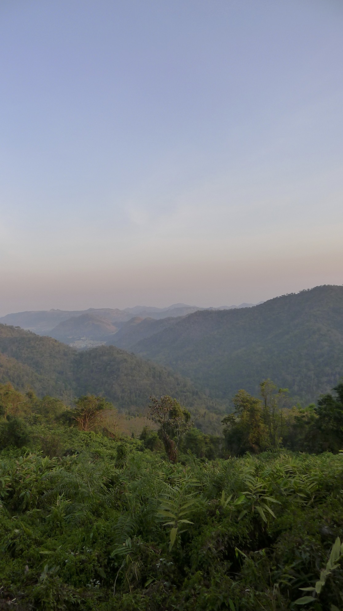 จากจุดนี้เราไม่ทราบระยะทางที่ชัดเจน นอกจากคำบอกเล่าว่าน่าจะเป็นระยะทางประมาณ 40 กม. แต่จากการถามคนในพื้นที่บางคนก็บอกว่า 30 กม. เราจึงไม่แน่ใจนักว่าระยะทางจริง ๆ จะเป็นอย่างไร แต่เนื่องจากมันจะเป็นการลงเขาตลอดทางเราจึงไม่กังวลมากนัก แต่ในความเป็นจริง มันก็จะมีขึ้น ๆ ลง ๆ เป็นพัก ๆ แม้ว่าโดยเฉลี่ยแล้วเราจะค่อย ๆ ลงเขามาเรื่อย ๆ ในระหว่างที่มีการปั่นขึ้นบ้างเป็นบางจังหวะ เราก็ร่วมกันยินดีว่านี่จะเป็นจุดพักในขณะที่เราปั่นกลับขึ้นมา ในช่วงนี้ตุ๊สามารถเกาะกลุ่มกับเราได้ตลอดเวลา เนินเขาสลับขึ้นลงในลักษณะนี้ตุ๊เอามันอยู่แล้วอย่างสบาย ๆ อย่างไรก็ตาม การเน้นพลังขาอันมหาศาลของเขาเพียงอย่างเดียว จะยังคงเป็นข้อจำกัดเมื่อเขานั้นยาวอย่างต่อเนื่อง หรือความชันสูงเกินจุดหนึ่ง แต่เราก็ได้เริ่มเห็นอีกข้อจำกัดของนักปั่นมือใหม่อ่อนซ้อม เมื่อเขาเริ่มลาดเป็นทางลงอย่างต่อเนื่องยาวขึ้นเรื่อย ๆ