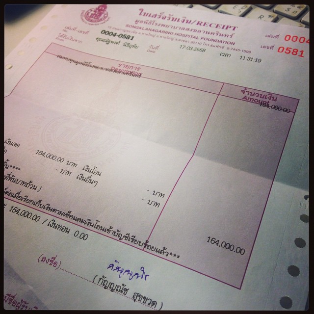 1. ณ วันที่ 29 เมย. 2557 เราได้จัดตั้งกองทุนกับ รพ.สงขลานครินทร์ แล้วด้วยยอดบริจาคเริ่มต้น 100,000 บาทครับ